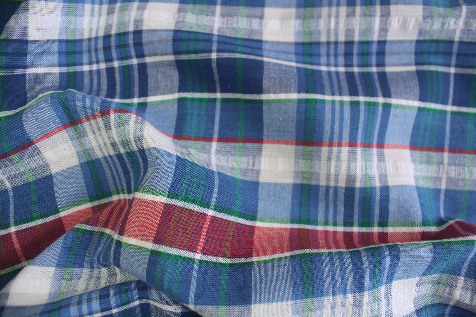 Bold Plaid Cotton Seersucker – 44" Wide | Blue, Red & Green Checks