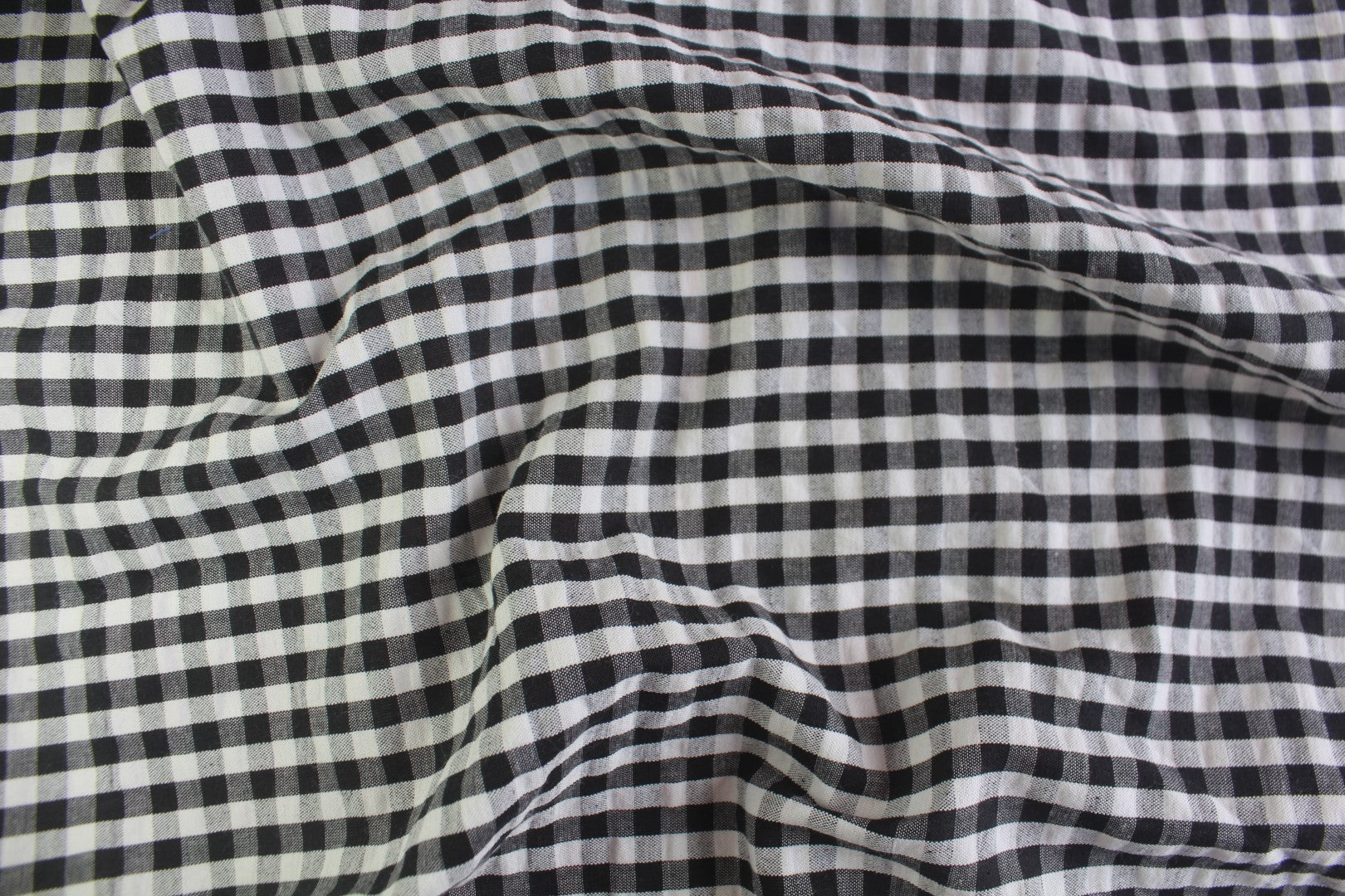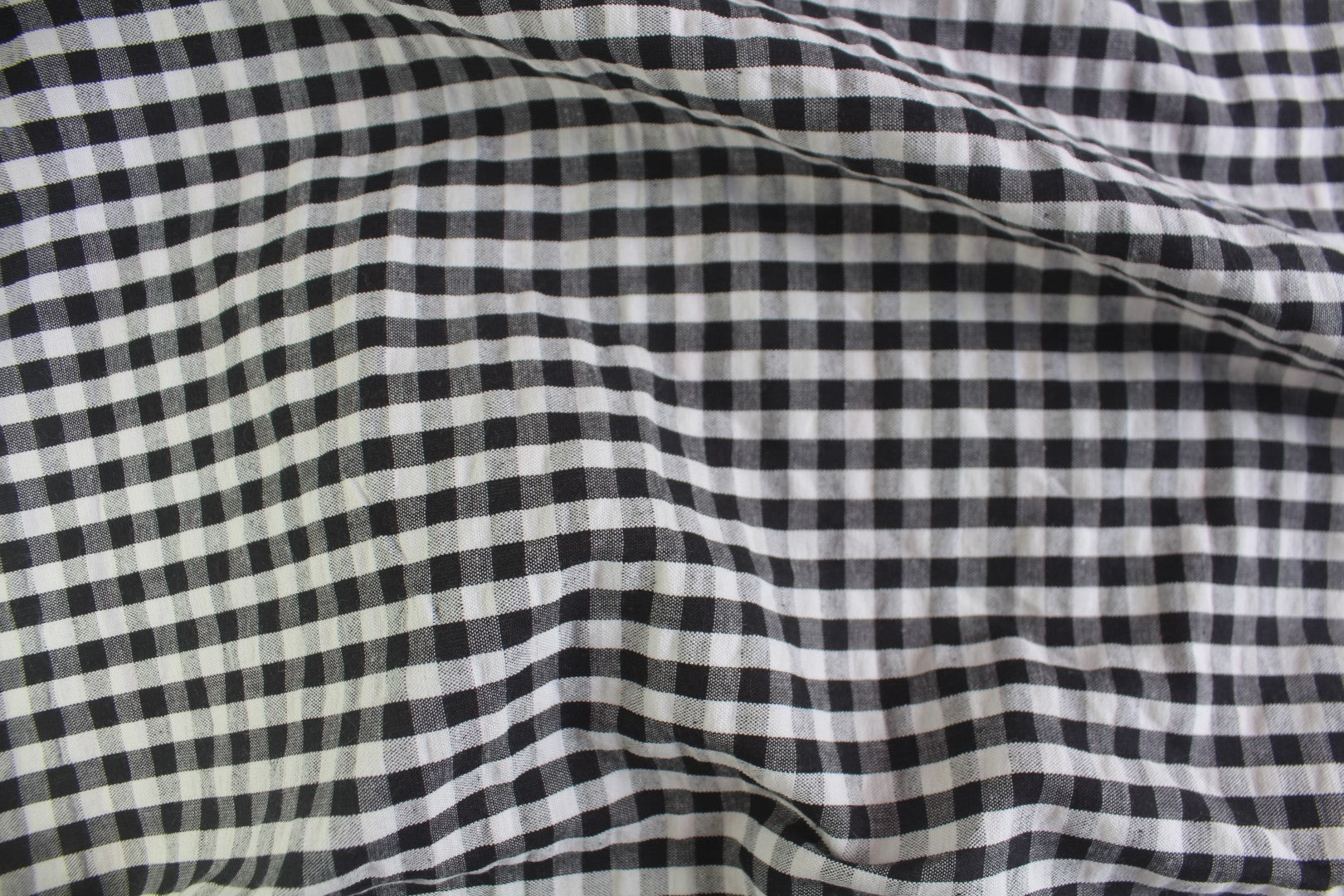 Classic Black & White Gingham Cotton Seersucker – 44" Wide | Wrinkle-Free Summer Fabric