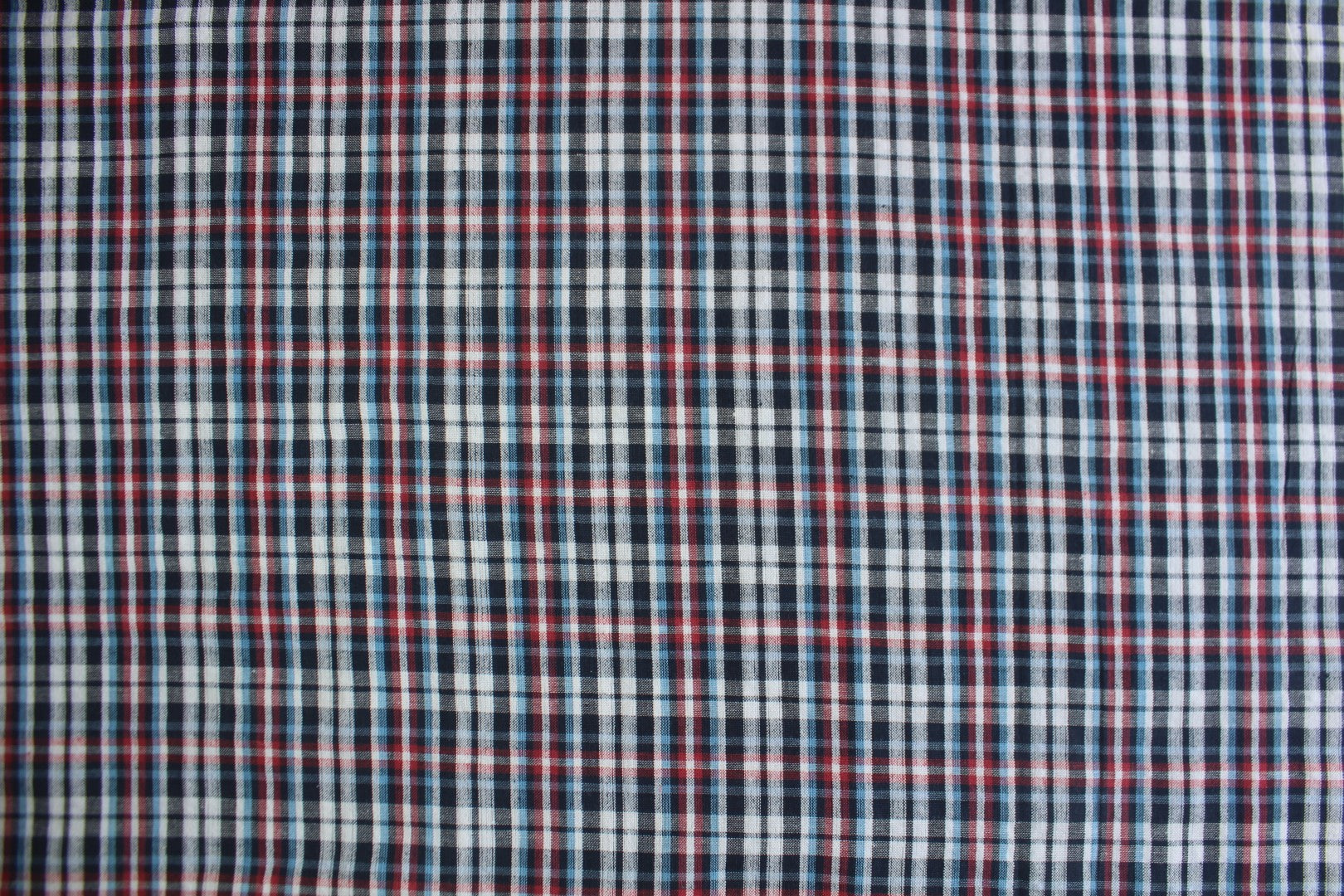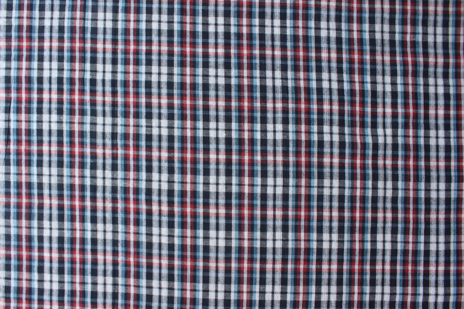 - Pattern: Small checks – navy, red, white, light blue