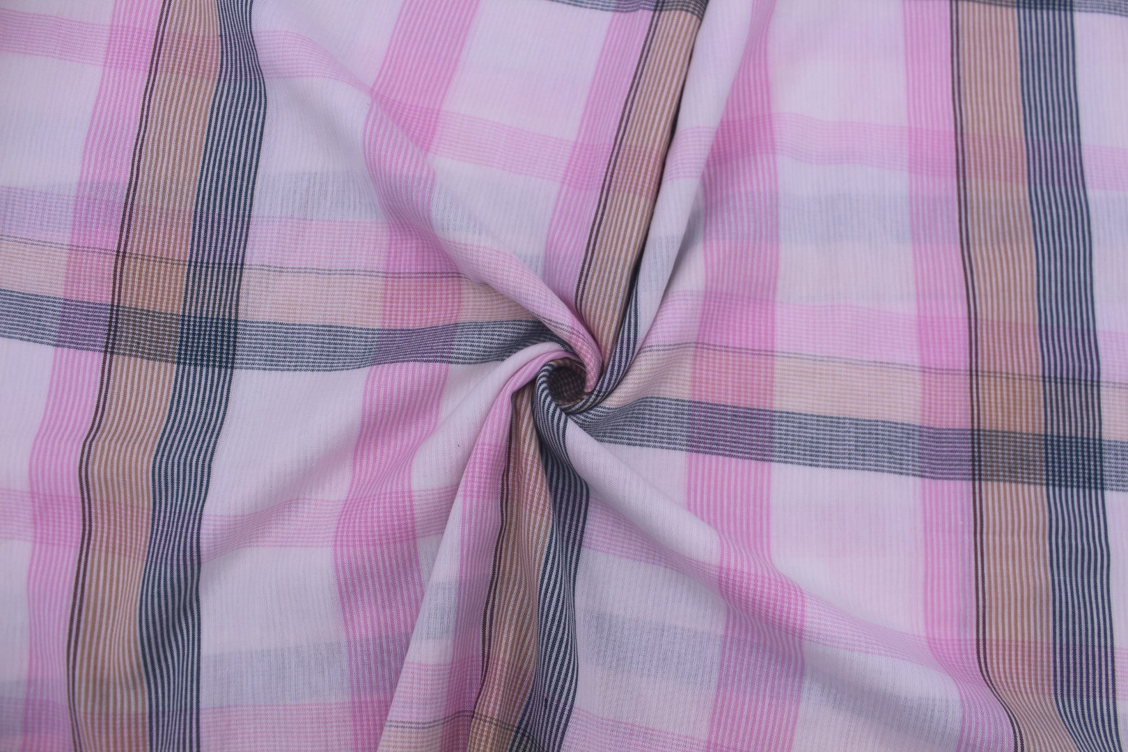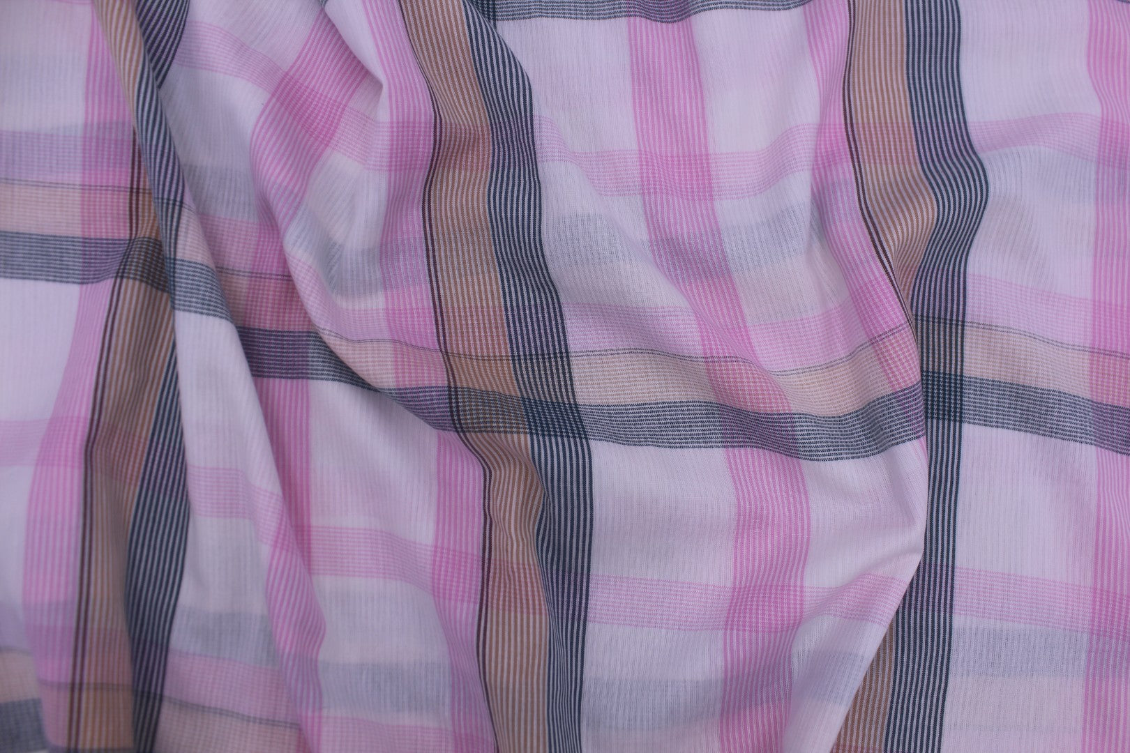 Refresh your creations with this Pink, Beige & Charcoal Check Cotton Seersucker!