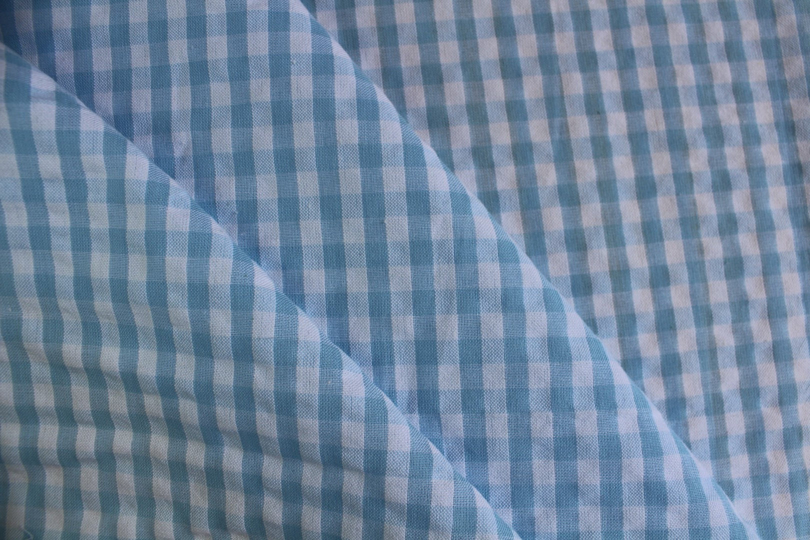 Sky Blue Gingham Cotton Seersucker β 58" Wide | Summer Clothing & Crafts